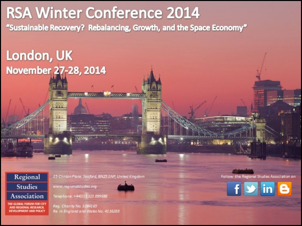 This Regional Studies Association Winter Conference 2014 presents a timely opportunity to discuss these issues, to establish the need and nature of future research imperatives, and to address the concerns and challenges confronting policymakers and practitioners. The conference organisers are keen to attract papers and sessions which address a broad research and policy agenda, including contributions from any discipline which can offer relevant insights associated with the remaking of the world space economy and its shaping of our cities and regions. Papers which are collaborative, international or multi-disciplinary are especially welcome: